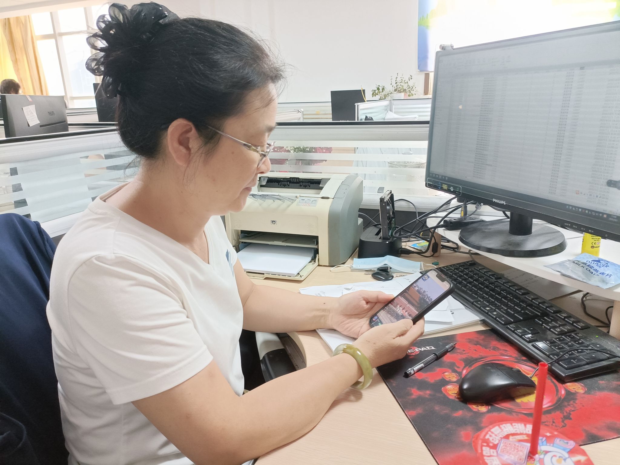 本次观看活动采用分批分层方式进行,确保工作观看两不误。中层以上职工在会议室集中观看,野外一线职工则通过移动端自行观看直播。阅兵式展示的新型武器装备和军兵种结构新布局,令职工们倍感振奋。